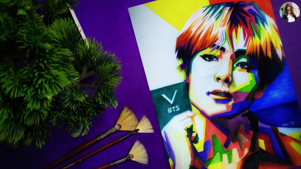 info korean painter and famous illustrator lee.k updated his instagram with his artwork of taehyung. It's no wonder that he is selected by . Winsor & newton acrylic paint and van bleiswijck holland acrylic paint. I started painting kim taehyung as the subject of my pop art. Bts' v, aka kim taehyung, is majorly known for his extremely charming visuals and intense expressions.